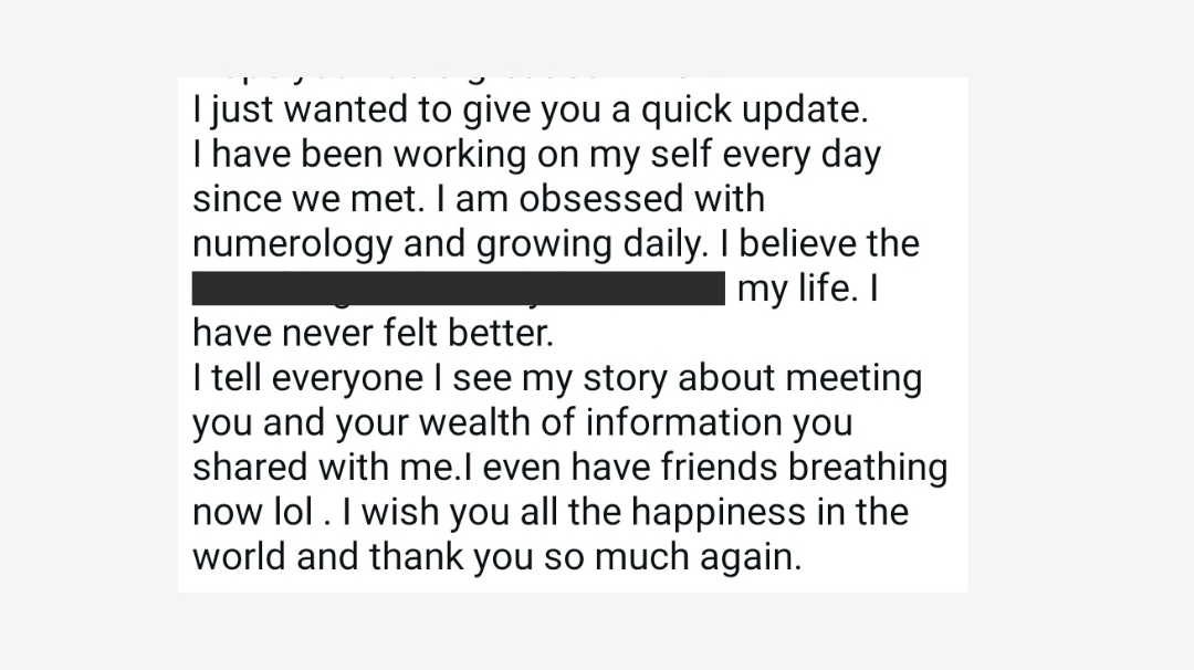 What changed most was not only my circumstances, but my relationship with myself. She helped me believe that I deserve a beautiful life, and that I have the capacity to create it. Not through force, but through trust and love.